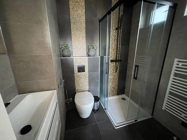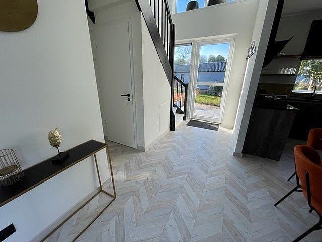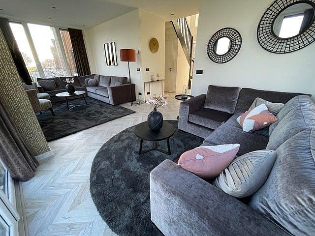 Binnen valt meteen het natuurlijke licht op, dat de woonkamer extra ruimtelijk maakt. De zithoek en grote eettafel bieden meer dan genoeg plek om samen te ontspannen of te eten. De moderne keuken is van alle gemakken voorzien, zoals een inductiekookplaat, vaatwasser en combimagnetron, ideaal voor het koken voor grotere groepen. Op de begane grond bevinden zich daarnaast een slaapkamer, een badkamer en een apart toilet.